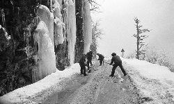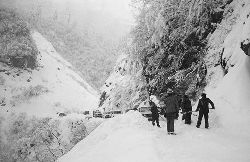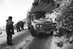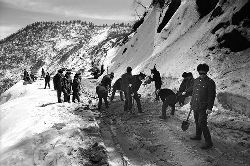 一九九七年十一月二十四日,連續(xù)多日大雪,把整個二郎山裹得嚴(yán)嚴(yán)實實,白茫茫一片。陣陣山風(fēng)吹過,大霧就像瀑布一樣,從山頂直往下翻涌傾瀉。 一大早,州交通局打冰除雪排險的干部職工就從二郎山管理站直奔山埡口。載有防滑砂的大貨車穿迷霧,繞山梁,向山頂埡口疾馳。由于氣溫太低,霧又大,車上的擋風(fēng)玻璃很快就結(jié)下了冰,路面打滑非常嚴(yán)重。前面車輛堵了起來,排險人員只好下車步行。 大霧彌漫,能見度很底,陰霾的天空又飄起了紛紛揚揚的雪花,剌骨的寒風(fēng)陣陣襲來,只聽見車蓬布在風(fēng)中“嗶剝”作響,卻看不見前面到底堵了多少車。排險人員只好相互攙扶踩著冰滑的邊路艱難地向行。好不容易來到堵在最前面的車子面前。原來是一輛載著原木的東風(fēng)牌大貨車側(cè)滑在公路上,把整個公路堵死了。 局領(lǐng)導(dǎo)當(dāng)即指揮大家用鋼釬、鐵鎬和鋤頭處理冰道,沒有撮箕,大家借來加水桶裝運冰雪……氣溫仍在急劇下降,剛從雪堆里刨出來的路,又被結(jié)起一層冰,就像地面上澆上了油,這就是冰雪道上有名的“桐油凌”。 有二位老同志不顧年老體弱,積極參與打冰除雪,一個在打冰時,被彈起的冰碴把腦門劃了一個口子,鮮血直往外冒。有人想幫他包扎,他堅決不干,自己就用手帕按住,把帽子向下拉蓋住傷口就算了。血從手帕中浸透出來,與眉毛上的冰凌結(jié)在一起。氣溫太低,冰層太厚,十字鎬每挖一下,多數(shù)情況下也就是挖下一個白點而已。不一會兒,另一位老同志已是滿頭大汗,大家勸他休息一下,他卻說:趁著現(xiàn)在雪不是太大,早點把主道上的冰雪多除點,過往二郎山的車輛就多一份安全。 排險人員的手凍紅了,刨冰雪碰傷的指頭還流著鮮血,身上蒸發(fā)的熱氣,把衣領(lǐng)口、袖子口和褲子口結(jié)成了冰,可是,誰也沒有吭一聲。 ……受堵車輛終于向前開動了。 風(fēng),越刮越猛,雪,越來越大。 防滑車在冰雪道上艱難地向前爬行著,車箱上面的職工們揮舞的洋鏟向路面撒著防滑砂。一路上風(fēng)絞雪,防滑車象一頭不聽使喚的牛,顛簸、亂竄,好不容易才來到260(二郎山最險處),對這里“桐油凌”路面進行重點防滑處理后,防滑車又返回來,開始向山頂進發(fā)……風(fēng)雪二郎山上打冰除雪、防滑排險,看似沒有驚天動地的壯舉,身臨其景才知其艱難辛苦。難怪當(dāng)年每每經(jīng)過二郎山冰天雪地奇險路段的車,都會向風(fēng)雪中屹立路邊的交通系統(tǒng)排險保暢通的職工們鳴笛致敬,風(fēng)雪中的那份情彌足珍貴。 川藏線上的老司機傳下來一首傷心的順口溜:“車過二郎山,如闖鬼門關(guān),萬幸不翻車,也要凍三天!”其險峻實為罕見,尤其是途經(jīng)二郎山260(公路公樁)處,曾被淡虎色變的人稱為“鬼招手”的險路段。 1983年1月3日,有著安全行車44萬公里記錄的一位駕駛員開著輛嶄新的東風(fēng)牌貨車,同行還有兩名職工,夜行二郎山,在彌天大霧中神秘地“失蹤”了。十五天后,搜山的人才用望遠鏡看到260公里路樁處的山崖下,有一塊汽車破篷布掛在樹枝,猶如招魂的凄厲幌幡在冷風(fēng)中招搖晃動。鋼纜繩吊著搜山的人下到崖下400米深處的谷底。扒開一座座雪堆,叫人汗毛倒豎:雪堆下,盡是廢大梁、爛車廂、銹車頭和支離破碎的汽車,足有一個汽車連!一輛不知埋了多久的卡車廂里牛肉已腐爛,駕駛室里坐著三具發(fā)黑的僵尸……其狀慘不忍睹!