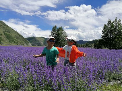 近日,記者專程來到新都橋鎮(zhèn),拍攝這處“攝影天堂”新增的秘境美景。從康定城區(qū)驅(qū)車沿國(guó)道318線一路前行,到新都橋鎮(zhèn)集市盡頭,右轉(zhuǎn)進(jìn)入省道215線,繼續(xù)前行2公里,在高原上從未見過的紫色花海便映入眼簾。藍(lán)天白云下,遍地的薰衣草花蕾燦然綻放,迎著陽光泛出夢(mèng)一般的紫色,在稍感涼爽的陣陣微風(fēng)中,如海浪一般搖曳生姿,散發(fā)出一種沁人心脾的芬芳,交織成最一幅醉人的畫卷。夢(mèng)境般的極致美景讓記者瞬間沉醉,游人們也迫不及待地踏進(jìn)了花田間阡陌交錯(cuò)的小路,在花的海洋里嬉戲游玩,盡情拍照。