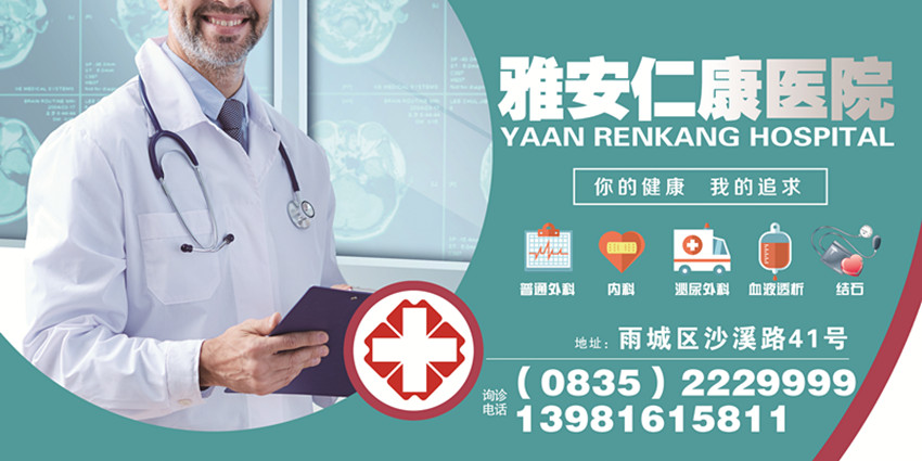 雅安仁康醫(yī)院是雅安市衛(wèi)計(jì)委注冊(cè)的二級(jí)乙等民營(yíng)非營(yíng)利性綜合醫(yī)院,位于雅安市雨城區(qū)沙溪路41號(hào),占地面積4000平方米,建筑面積4800平方米,編制床位120張,實(shí)際開(kāi)放床位150張,開(kāi)設(shè)有內(nèi)科、外科、麻醉科、手術(shù)室、中醫(yī)科、婦科、檢驗(yàn)科、超聲心電圖室、放射科等多個(gè)臨床醫(yī)技科室,現(xiàn)有職工120人,其中衛(wèi)生技術(shù)人員96人;醫(yī)院配備有西門(mén)子CT、進(jìn)口DR、彩超、全自動(dòng)生化分析儀、動(dòng)態(tài)心電及動(dòng)態(tài)血壓監(jiān)測(cè)儀、腦彩多、骨密度檢測(cè)儀、血液透析機(jī)、腹腔鏡、纖維膽道鏡、經(jīng)皮腎鏡、膀胱鏡、硬性輸尿管鏡、纖維輸尿管鏡、前列腺電切鏡、鈥激光碎石治療儀、綠激光氣化治療儀、體外碎石機(jī)、氣壓彈道碎石機(jī)、紅外光譜結(jié)石分析儀等多種先進(jìn)醫(yī)療設(shè)備。