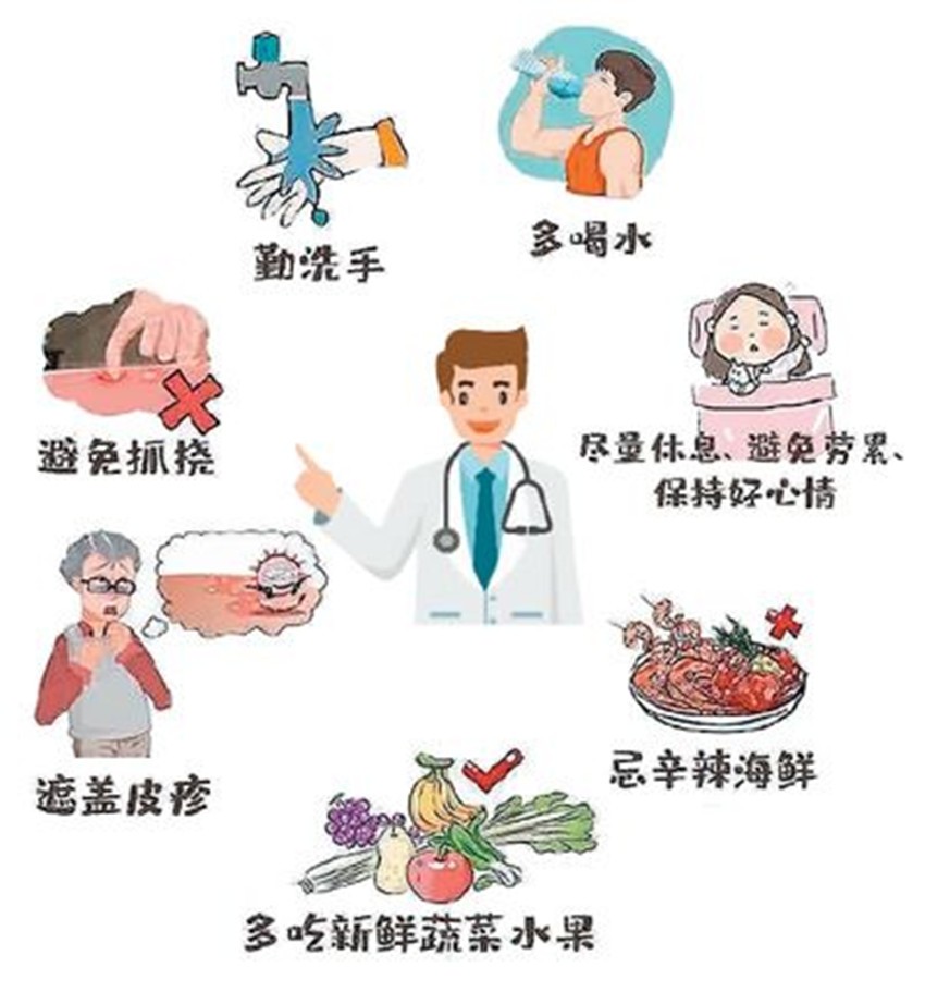 專家提醒,帶狀皰疹主要通過(guò)接觸傳播,抵抗力低的老年人和兒童應(yīng)避免接觸帶狀皰疹患者。與此同時(shí),中老年人以及有自身免疫缺陷的人群要注意休息,合理飲食,加強(qiáng)鍛煉,增強(qiáng)抵抗力;糖尿病、腫瘤等患病人群,要特別留意觀察自身免疫狀況,養(yǎng)成良好生活習(xí)慣,有效控制原有疾??;年輕人也不能掉以輕心,避免頻繁加班、熬夜等導(dǎo)致抵抗力下降。一旦發(fā)現(xiàn)患有帶狀皰疹,要盡快就醫(yī),同時(shí)注意避免抓撓皮疹處,勤洗手、多喝水、多吃新鮮蔬果,忌辛辣及海鮮,多休息,避免勞累,保持好心情。