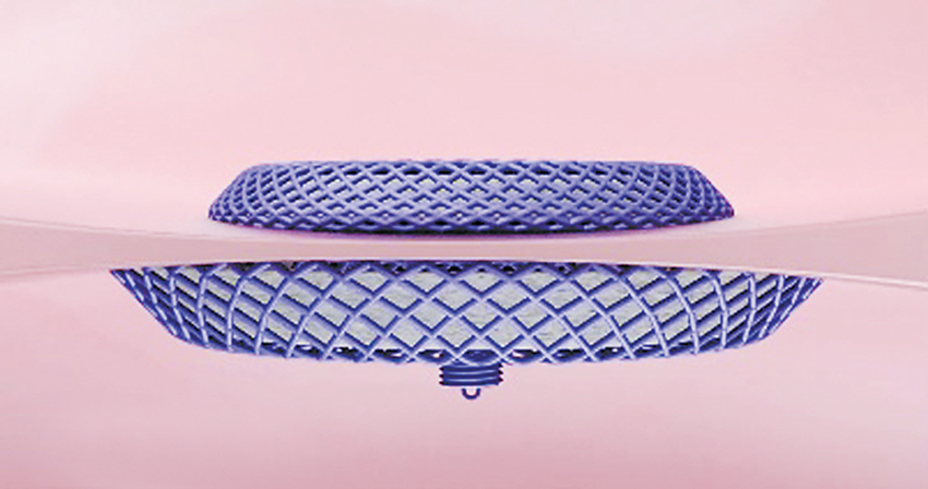 既然有了“孔”,就得想辦法“堵”。生物可降解卵圓孔封堵器由一大一小2個內凹狀的“圓盤”連接在一起,細看呈蜂窩狀,就像一個“塞子”,牢牢扣住左右心房的“墻壁”。