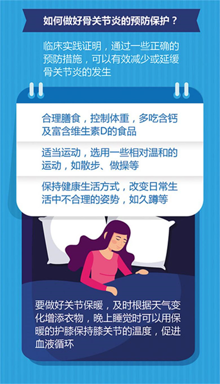 “目前醫(yī)學(xué)研究表明,低溫并不是直接導(dǎo)致骨關(guān)節(jié)炎的誘因,但它會讓關(guān)節(jié)炎的癥狀更加明顯?!彼窝蠼榻B,天冷時關(guān)節(jié)炎患者血管收縮,不利于血液循環(huán)和肌肉等軟組織發(fā)揮功能,容易加重關(guān)節(jié)炎,因此建議骨關(guān)節(jié)炎患者做好防寒保暖工作;寒冷天氣下,做好保暖更有利于關(guān)節(jié)健康,有的年輕人為了好看而穿得較單薄、不注意保護(hù)膝關(guān)節(jié),可能會埋下骨關(guān)節(jié)炎的隱患。
