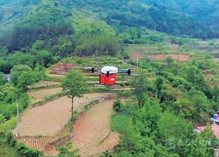 圖為京東集團(tuán)的無人機(jī)在送貨。