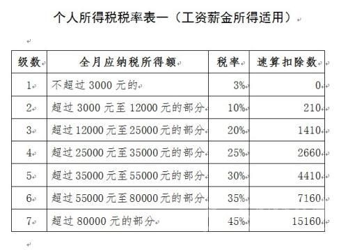 附個人所得稅稅率表(工資薪金所得適用)