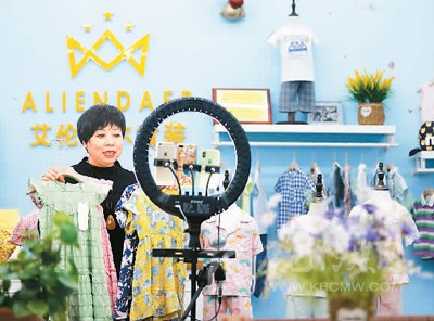 5月15日,位于山東省青島市即墨區(qū)的青島艾倫達(dá)爾服飾有限公司營(yíng)銷人員通過(guò)云直播推介產(chǎn)品。