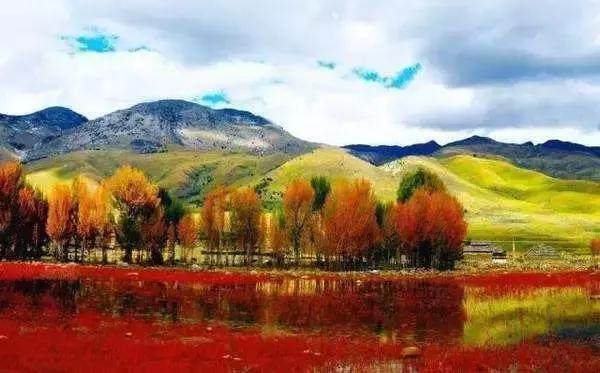 秋季,是稻城亞丁最具有詩意的季節(jié)。火紅、金黃、碧藍(lán)是自然這位大藝術(shù)家收藏已久最珍貴的顏料,這瞬間被洋洋灑灑潑灑在這天地之間。無論從什么角度看,取景框永遠(yuǎn)是一幅美麗的畫面。