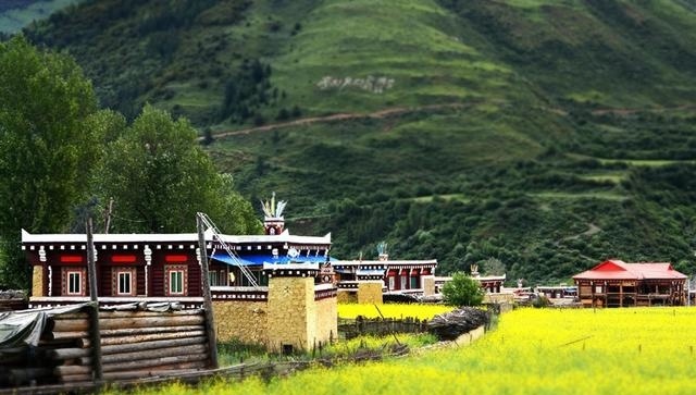 走進(jìn)這座別致的高原城市,首先呈現(xiàn)在你面前的就是那鱗次櫛比的藏式民居。這些民居外表主要由棕白兩色構(gòu)成,白色的屋頂,白色的主墻,木結(jié)構(gòu)處多用棕色顏料染涂,其間配以紅色、藍(lán)色圖案,在藍(lán)天、白云、青山、綠水的輝映下,仿佛幻化成妙不可言的積木圖案。這里的民居修得美輪美奐。如果不是親眼見到,還一定會認(rèn)為這令人眩目的房屋是夢境。這就是道孚民居,被譽(yù)為散落人間的仙境皇宮。