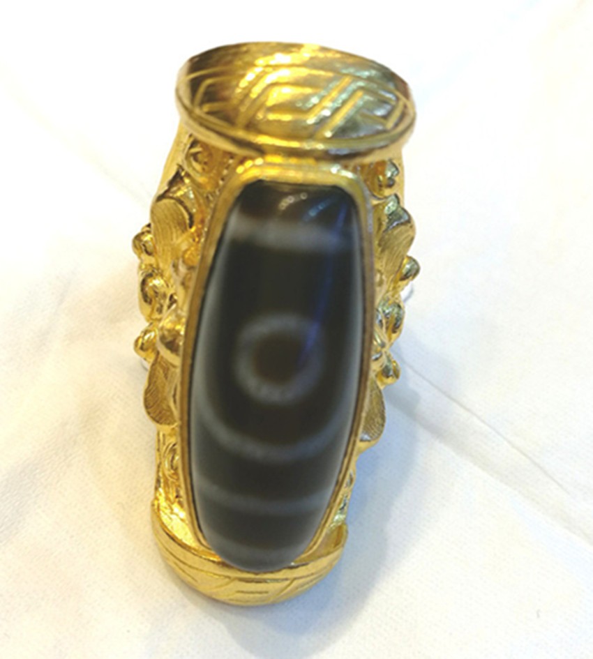 天珠,一種神秘而珍貴寶珠,不僅具有裝飾搭配的作用,更寓意著平安、好運(yùn)。藏族人認(rèn)為能夠供養(yǎng)一顆老天珠既是有了福報(bào),并相信能夠獲得意想不到的吉祥和圓滿。珍貴的天珠鑲嵌在做工精細(xì)的黃金花紋里,不僅是對時(shí)尚潮流的追隨,更是虔誠信仰的一種體現(xiàn)。