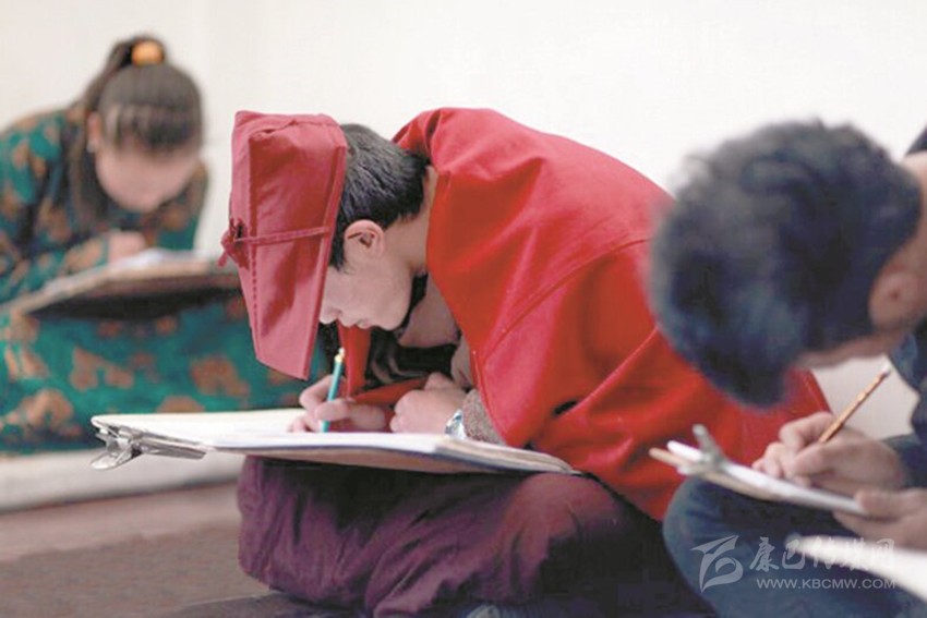 澤吉拉姆今年17歲,來學(xué)畫唐卡已經(jīng)兩年。每天清早天剛亮,她便盤腿坐在地上用心地為自己所畫的一副“五部文書”上色。據(jù)擁忠洛吾介紹,學(xué)習(xí)唐卡繪畫會磨練一個人的意志力,過程枯燥而漫長,一般6年左右才能出師。而對澤吉拉姆而言,她一點(diǎn)兒都不覺得苦,她說,她就是喜歡畫唐卡,這種喜歡仿佛與生俱來。她的妹妹現(xiàn)在也在這里學(xué)畫唐卡。