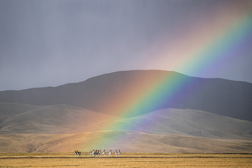 彩虹之下的藏野驢。孫瑞博 攝