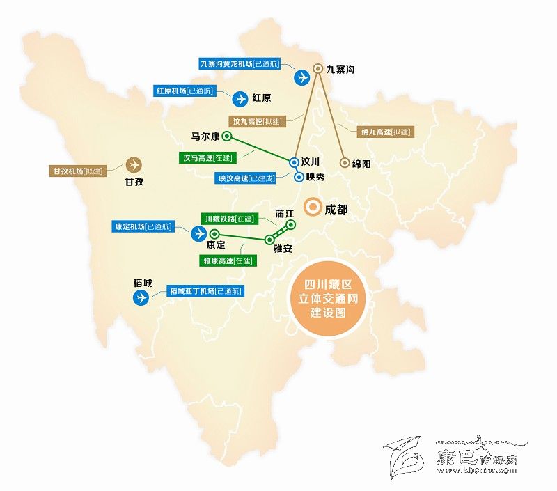 上月出臺的《四川省推進(jìn)實施長江經(jīng)濟(jì)帶綜合立體交通走廊規(guī)劃工作方案》中提出,我省將加快支線機(jī)場建設(shè),包括進(jìn)一步完善位于四川藏區(qū)的紅原機(jī)場配套設(shè)施,以及將在“十三五”期間,開工建設(shè)同樣位于藏區(qū)的甘孜機(jī)場。鐵路方面也有好消息,備受關(guān)注的川藏鐵路,除了剛剛?cè)€開工的蒲江至雅安段外,還將在明年上馬建設(shè)雅安至康定(新都橋)段。