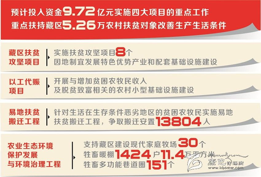 2016年,藏區(qū)扶貧解困行動(dòng)計(jì)劃預(yù)計(jì)投入資金9.72億元,將繼續(xù)實(shí)施藏區(qū)扶貧攻堅(jiān)項(xiàng)目、以工代賑項(xiàng)目、易地扶貧搬遷工程和農(nóng)業(yè)生態(tài)環(huán)境保護(hù)發(fā)展與環(huán)境治理工程四大重點(diǎn)工作,重點(diǎn)扶持藏區(qū)5.26萬(wàn)農(nóng)村扶貧對(duì)象改善生產(chǎn)生活條件。與去年相比,今年的扶貧解困行動(dòng)計(jì)劃有何變化與亮點(diǎn)?記者采訪了省發(fā)展改革委、省扶貧移民局等相關(guān)處室的負(fù)責(zé)人。
