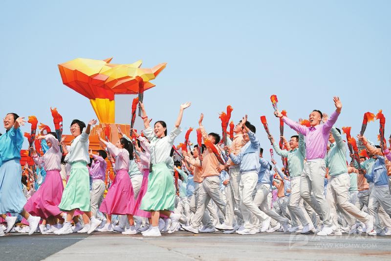 群眾游行中的美好生活方陣。 新華社記者劉軍喜攝