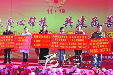本網(wǎng)訊(何才華 文/圖)11月18日,鄉(xiāng)城縣愛心慈善募捐活動在該縣香巴拉休閑廣場舉行,來自全縣的機關(guān)干部、宗教界代表、個體工商戶代表、建筑施工企業(yè)等各界人士近2000人為需要救助者獻(xiàn)出自己的一份愛心?;顒蝇F(xiàn)場募捐資金532998元。