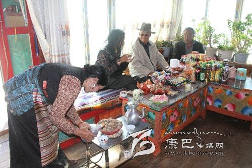 說話間,聽見女兒四郎曲珍和媽媽從廚房里端著牛肉包子走了出來。廚房里冰箱、高壓電飯煲等家用電器一應俱全,他興激動地說:“現(xiàn)在,縣上大力實施農村的五通工程,用電也十分方便;以前打酥油茶都用木桶,現(xiàn)在有高原專用的打茶機,既快捷又方便;……”