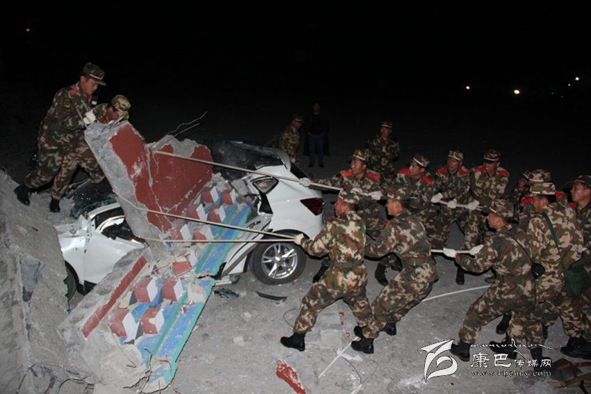 州森警支隊(duì)參謀長帶前指和康定中隊(duì)60人到達(dá)震中塔公鎮(zhèn)奪讓村和木雅祖慶學(xué)校。官兵看到校舍慘景和師生驚慌失措表情,忘記了奔波疲勞和自身安危,有序疏散30名師生、搶救學(xué)校2臺受損車輛,冒著零下近10度的低溫,連夜為師生搭建帳篷17頂、簡易廁所10個(gè),參戰(zhàn)官兵一夜未睡奮戰(zhàn)至黎明。23日8時(shí)10分,參戰(zhàn)的森警官兵又奉命轉(zhuǎn)戰(zhàn)至瓦澤鄉(xiāng)魚子西1、2、3村,為藏牧民轉(zhuǎn)移牦牛等牲畜200余頭,從危房中搬運(yùn)大米、青稞等糧食11.8噸,沙發(fā)、銅火爐、電視機(jī)等1680余件(套)。24日上午官兵又深入到瓦澤鄉(xiāng)麥巴村,為受災(zāi)群眾拆除危房2間、搬運(yùn)危房內(nèi)貴重物品10余噸,下午,抗震救災(zāi)指揮部又緊急調(diào)參戰(zhàn)森警官兵為沙德鄉(xiāng)運(yùn)送棉帳篷等救災(zāi)物資,支隊(duì)前指帶50人動用6臺車輛機(jī)動110公里到達(dá)沙德鄉(xiāng)政府,又連夜劃分四個(gè)行動小組為沙德鄉(xiāng)7個(gè)偏遠(yuǎn)村(組)將帳篷運(yùn)送到位,官兵一夜未睡將10余頂棉帳篷依次搭建到位。25日上午,官兵又接到塔公鎮(zhèn)扎西寺僧尼告急,60名官兵顧不上吃飯,緊急出動運(yùn)輸15頂棉帳篷,奮戰(zhàn)扎西寺5個(gè)安置點(diǎn),至晚19時(shí)才搭建完畢,官兵就座運(yùn)兵車?yán)锎蝽镄菡?6日上午,武警總部工作組看望慰問參戰(zhàn)一線官兵,官兵精神振作,按抗震救災(zāi)指揮部指示,60名官兵在聯(lián)指物資發(fā)放中心,搬運(yùn)裝卸棉帳篷、棉大衣、棉被等越冬衣物和礦泉水、大米、面粉、蔬菜等生活物資68噸。目前,60名官兵仍奮戰(zhàn)一線,雅江大隊(duì)、道孚大隊(duì)部分官兵在各自轄區(qū)展開震后自救互救行動。