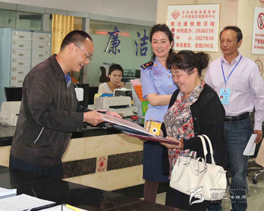 州政府副州長(zhǎng)何飚為我州首次推行“一窗受理 , 三證統(tǒng)發(fā)”頒證。