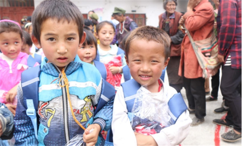 俄牙同鄉(xiāng)小學(xué)的孩子們收到志愿者送來(lái)的物資,大方的提出合影。