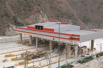 齊整的標(biāo)志線、指示路標(biāo),安全的隔離柵、防護(hù)網(wǎng),醒目的信號燈、提示牌……道路附屬設(shè)施井然齊備,體驗(yàn)車隊(duì)從ETC車道剛駛出,高懸著“雅康高速歡迎您”電子指示牌的瀘定收費(fèi)站出現(xiàn)在眼前,二郎山隧道近在咫尺。