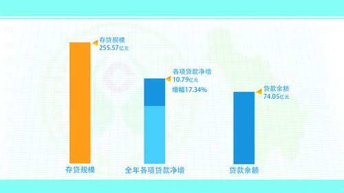 ——存貸規(guī)模高速增長。截至2017年末,甘孜農(nóng)信存貸規(guī)模255.57億元,全年各項存款凈增21.71億元,增幅13.59%,位居全州銀行業(yè)金融機構第一位,余額達到181.52億元,服務地方經(jīng)濟的實力進一步增強;各項貸款凈增10.79億元,增幅17.34%,余額達到74.05億元,有力支持了經(jīng)濟社會發(fā)展。