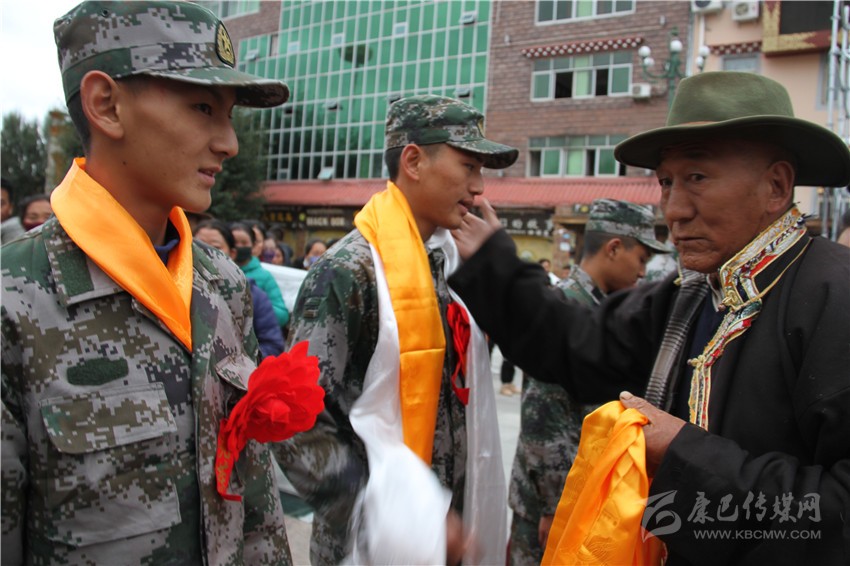 9月13日,中秋佳節(jié)。理塘縣在格薩爾王廣場熱烈歡送14名應征藏族青年光榮入伍。藏區(qū)群眾“舍小家顧大家”,用哈達送別這批愛國熱血青年光榮入伍。