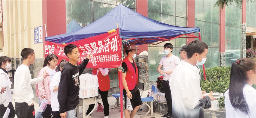 圖為妹妹為參加中考的哥哥獻(xiàn)上鮮花。