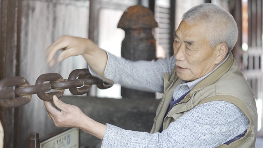 姚先貴向記者展示“環(huán)環(huán)相扣”的鐵索。