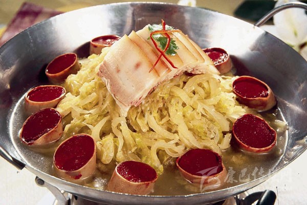 血腸的烹飪方法也別具特色。將灌好的血腸放入湯中煮沸,煮至血腸浮起,腸成灰白色,約八成熟,便立即起鍋,盛入盤內,全家席地而坐,割而食之。